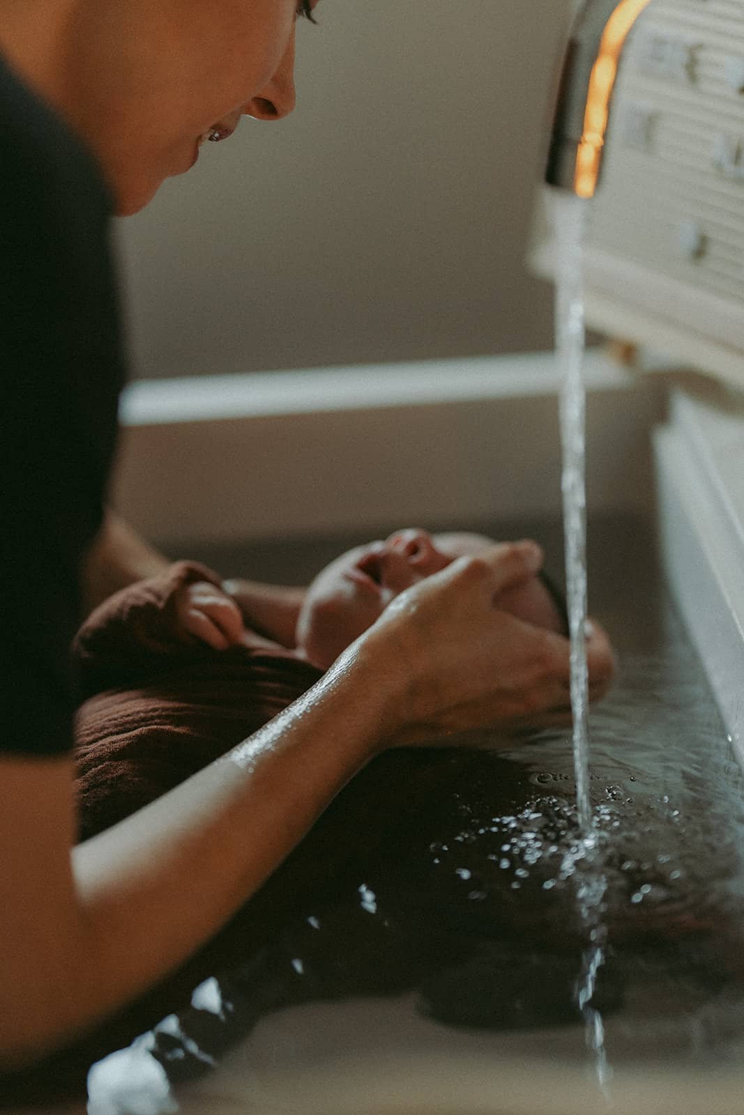 Le bien-être du bébé est communicatif. Le bain permet le lien entre les émotions de bébé, et celles des parents.